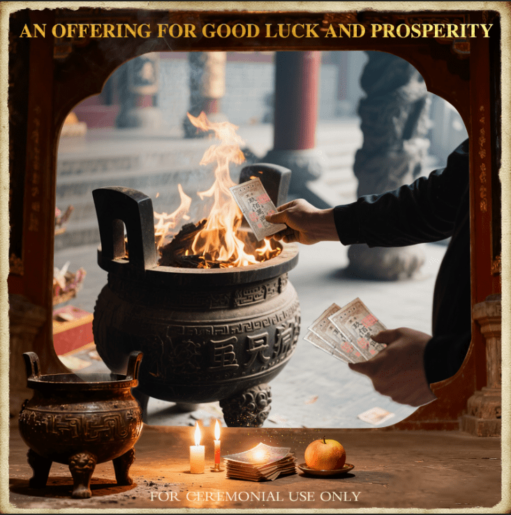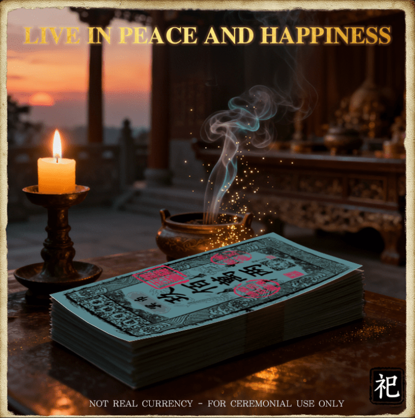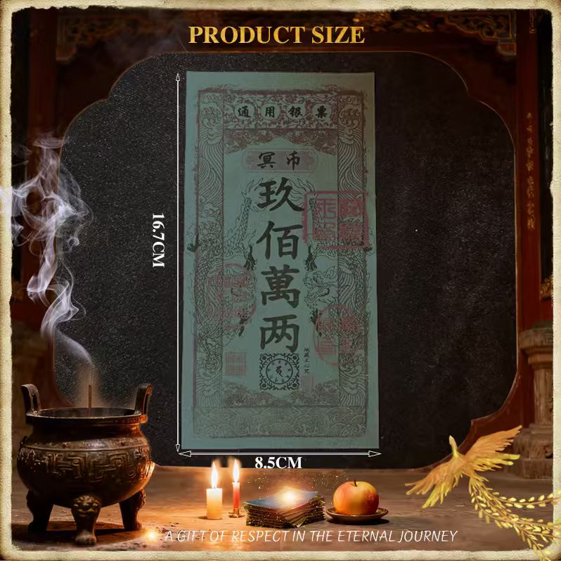 A meaningful and emotionally charged way of paying tribute, used to remember and bless deceased loved ones. Pray for blessings and protection, pray for prosperity. Each "paper money" is infused with bright colors and exquisite designs, symbolizing prosperity, good luck and the continuation of ancestral heritage.It is widely used in ceremonies, ancestral altars, ancestral birthdays, especially for energy connections with loved ones in heaven, and for decorating rooms to drive away ghosts and evil.